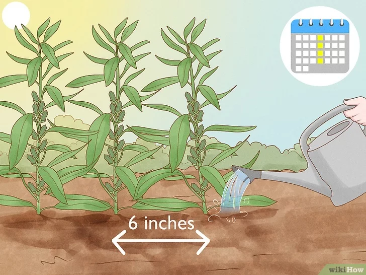 Water your sesame plants once per week.Make sure your plants are in full sunlight, and don’t let the soil get too saturated. Sesame plants do best in dry conditions. After 3-4 months, flowers and sesame fruit pods will begin to appear.[9]
