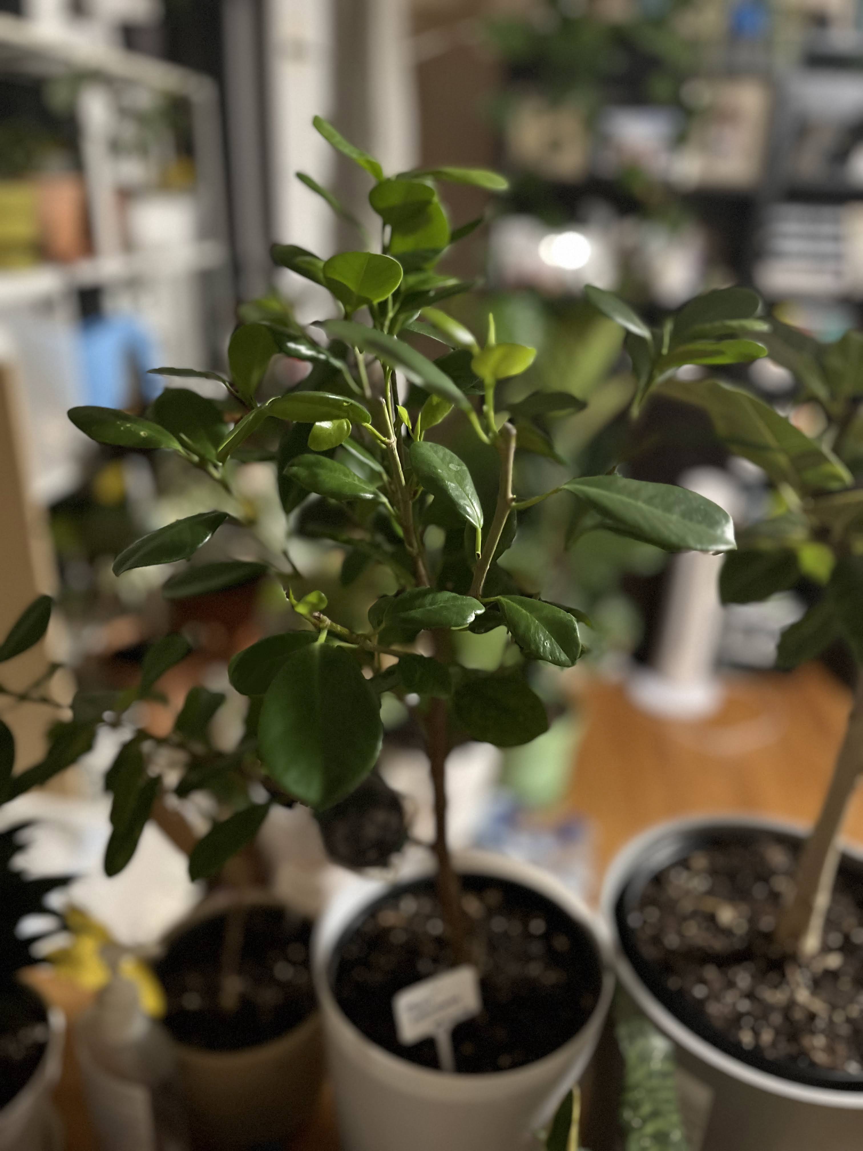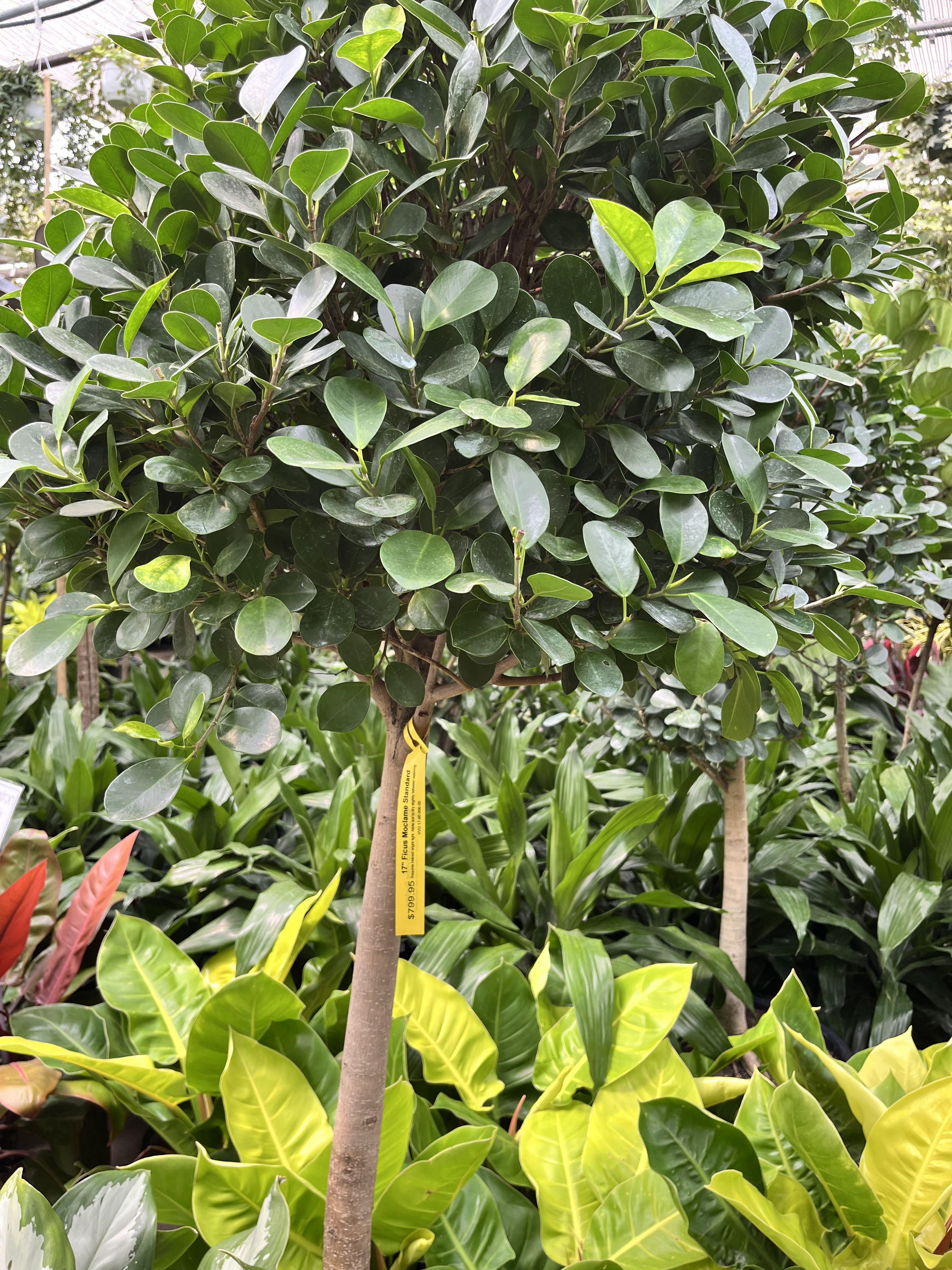 This plant has a lot of names in online, Ficus moclame, Ficus microcarpa, Ficus benjamina danielle, also lollipop tree.