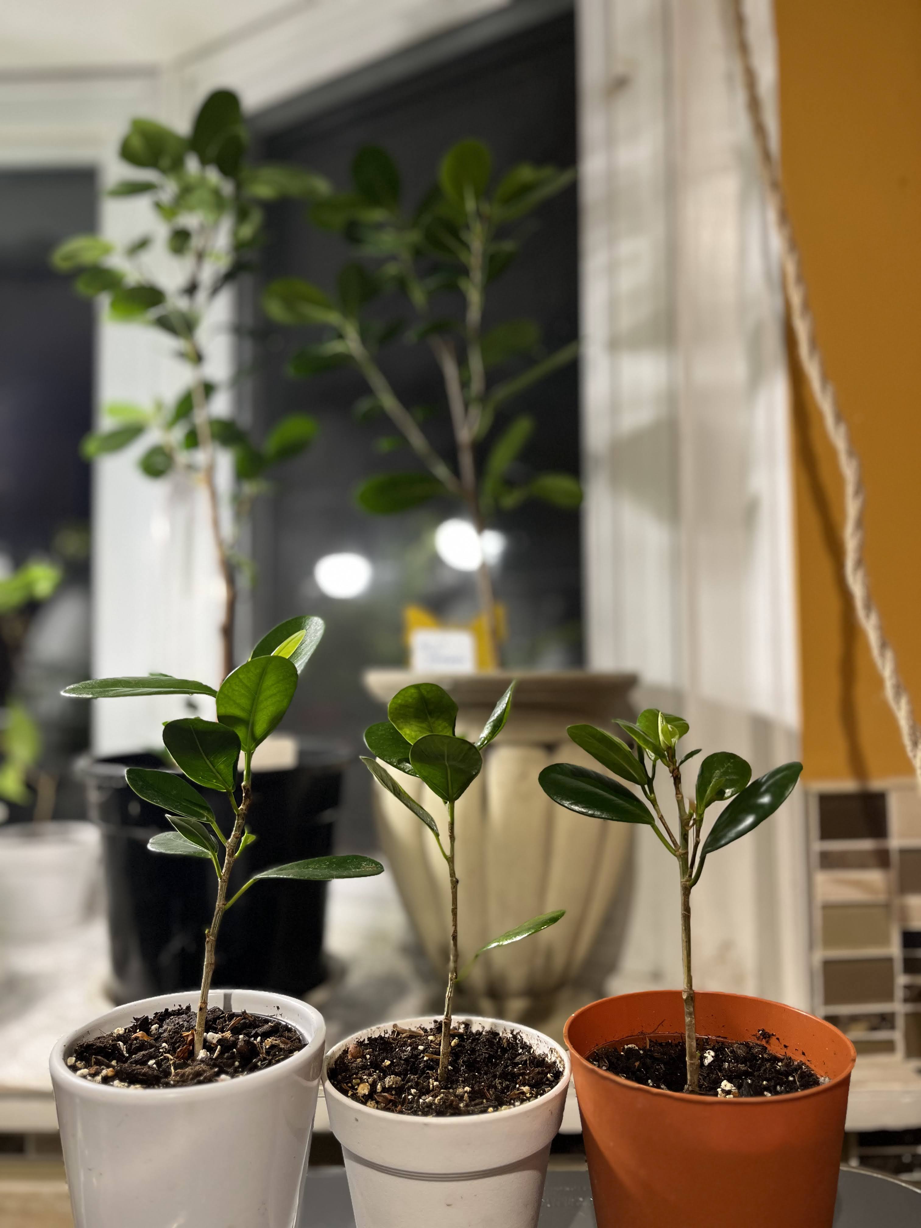 I did even air layering one branch, it was success but later both plants were dead by overwatering issues. As other Ficus family, it can easy to propagate, so now 3 small pot also included 5pots.