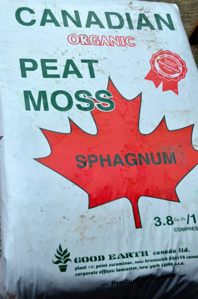 3.) In a big bucket or wheelbarrow mix our secret ingredients together for peach tree planting success. Combine Canadian sphagnum peat moss, composted manure and garden soil in equal parts.